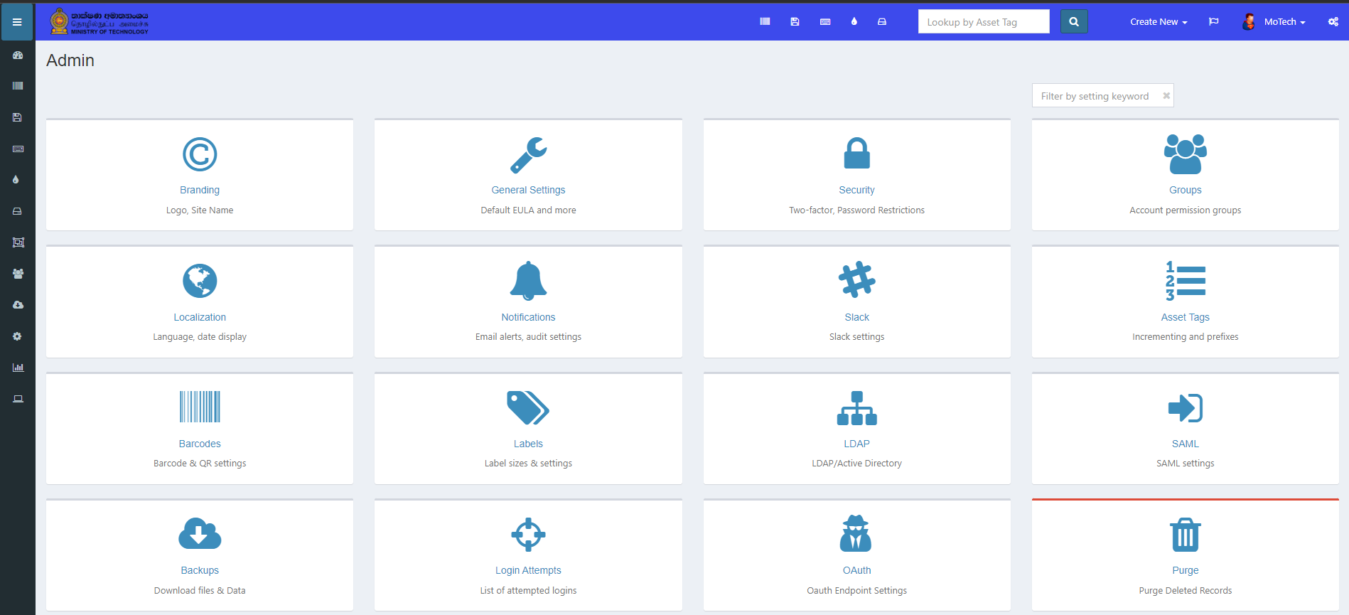 Admin Settings are available only to super-admins of the system. They control settings such as branding, colors, logo, alert thresholds, LDAP configuration, two-factor authentication, password security and much more. See Admin Settings documentation for more details.