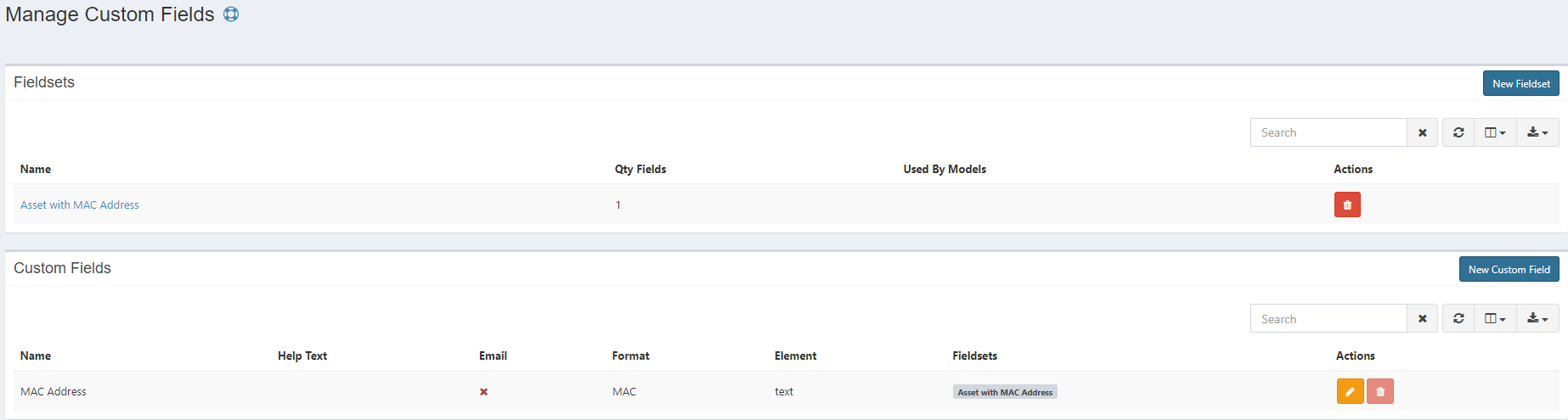 Select the “Custom Fields” from the dropdown list of settings. First, create a new “New Custom Field” for the asset. Then create a “New Fieldset” and connect it with the newly created custom field.