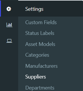 Select “Suppliers” from the settings and then select “Create New” to add a new supplier to the system by filling in their details.